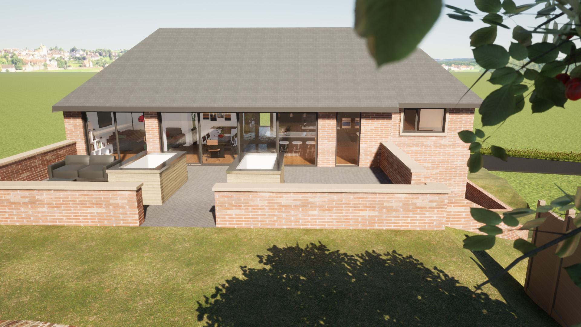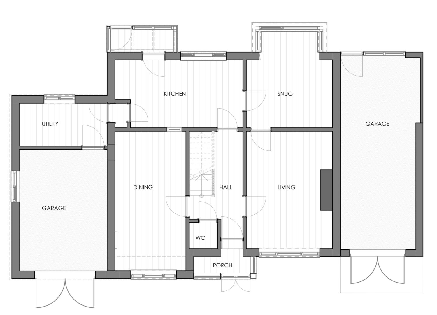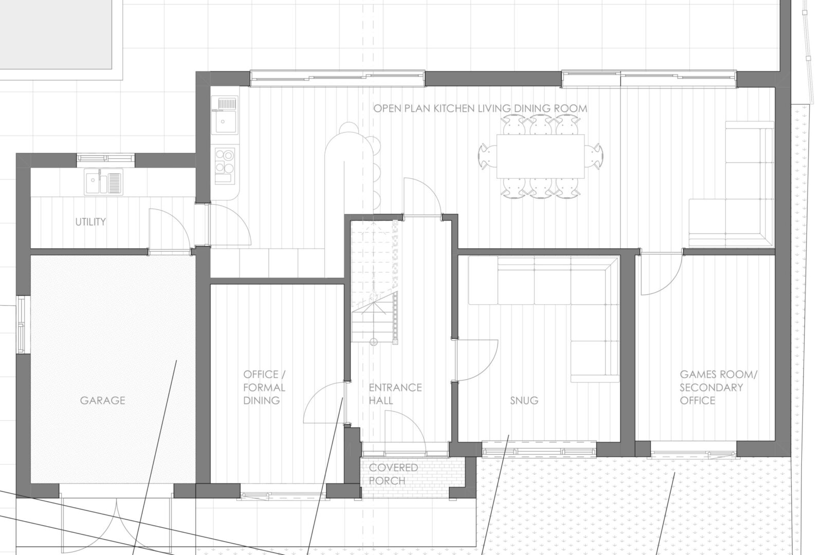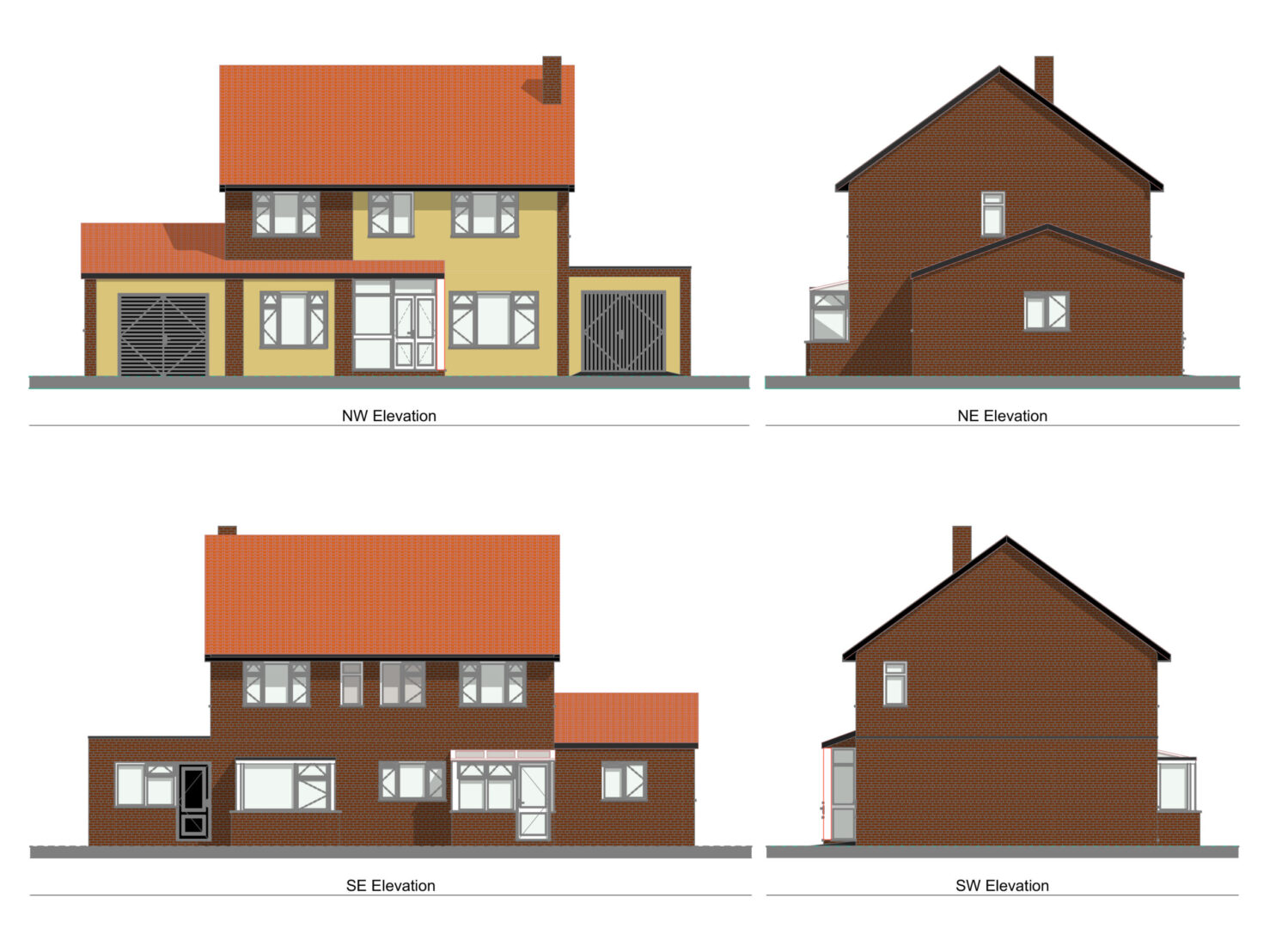 Two schemes were required to be designed; one being a complete redesign turning this home into a large four or five bed property with multiple ancillary spaces such as work from home offices, games room, cinema room and wine cellar. The second option, a much lighter touch featured a side extension into and above the existing garage.